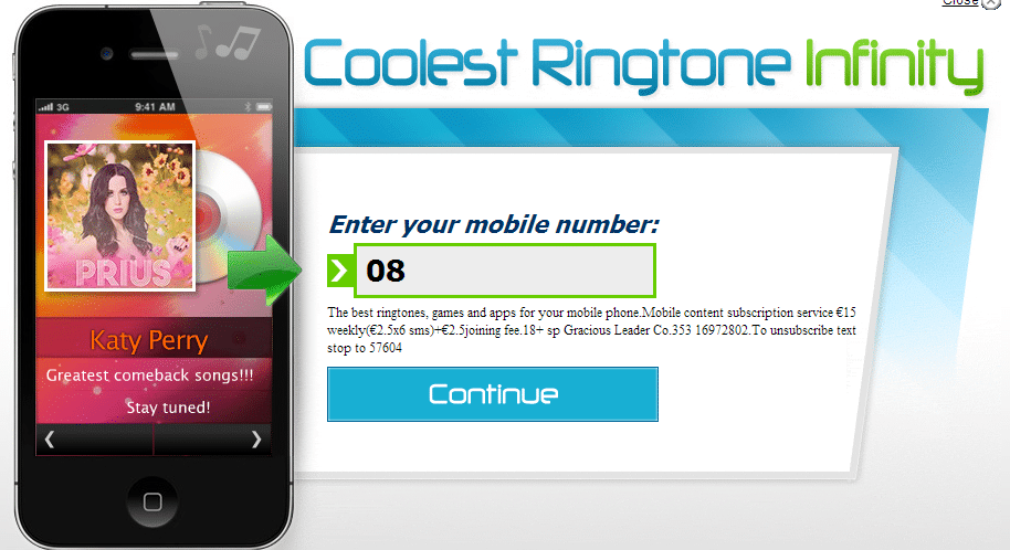 If user clicks on one of the icons the following content he receives depends on his country of origin. E.g. if a user is from Ireland he will be redirected to the following premium subscription page: