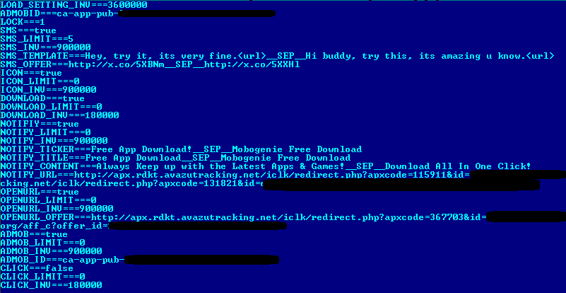 E.g. in case of Russian IP address an automatic download of Mobogenie app (as it happened in case of the first version of Selfmite worm) will start.